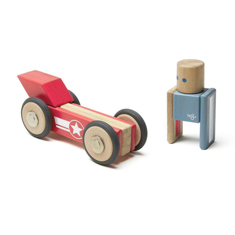 Tegu 12-teilige magnetische Holzbausteine Daredevil – Abenteuer auf Rädern